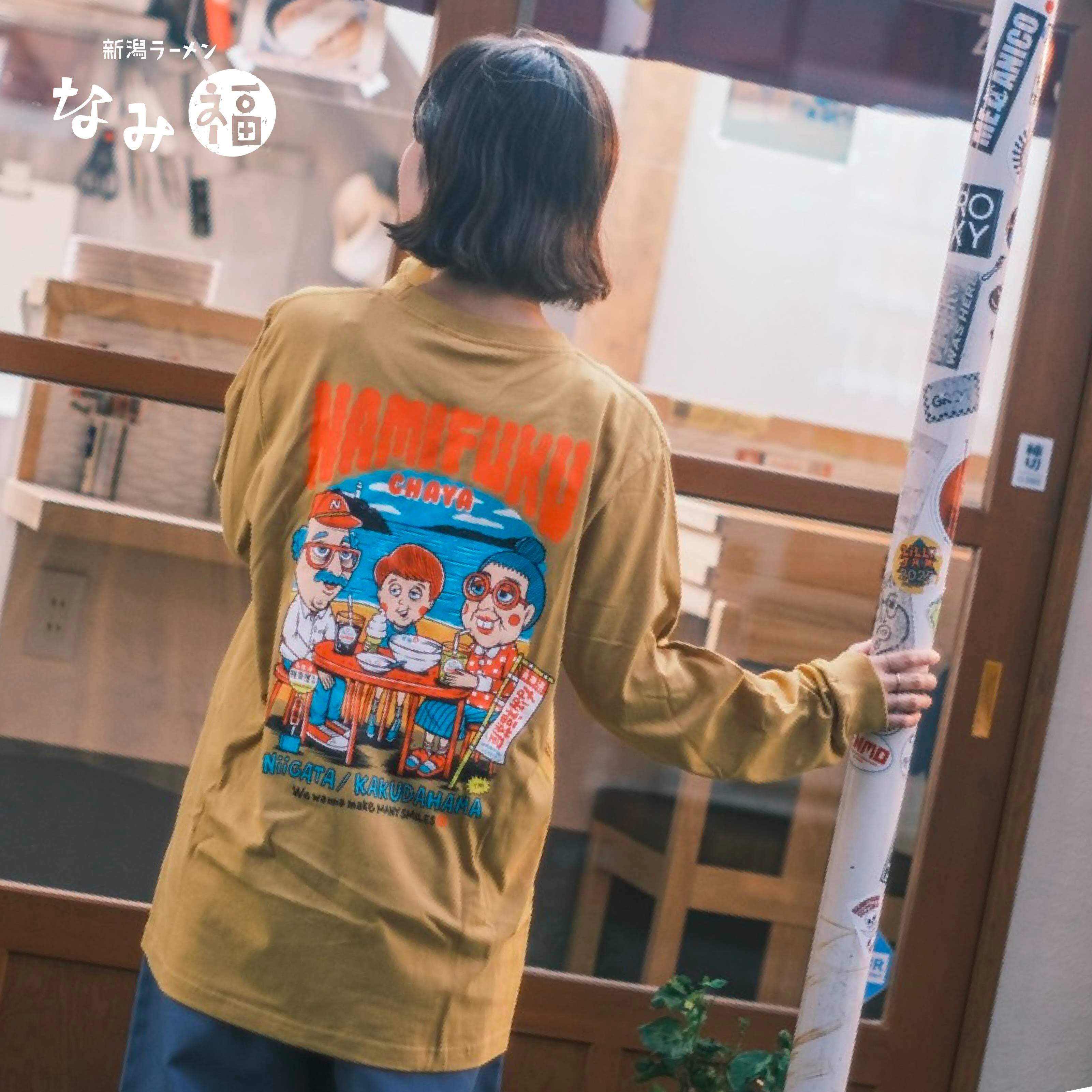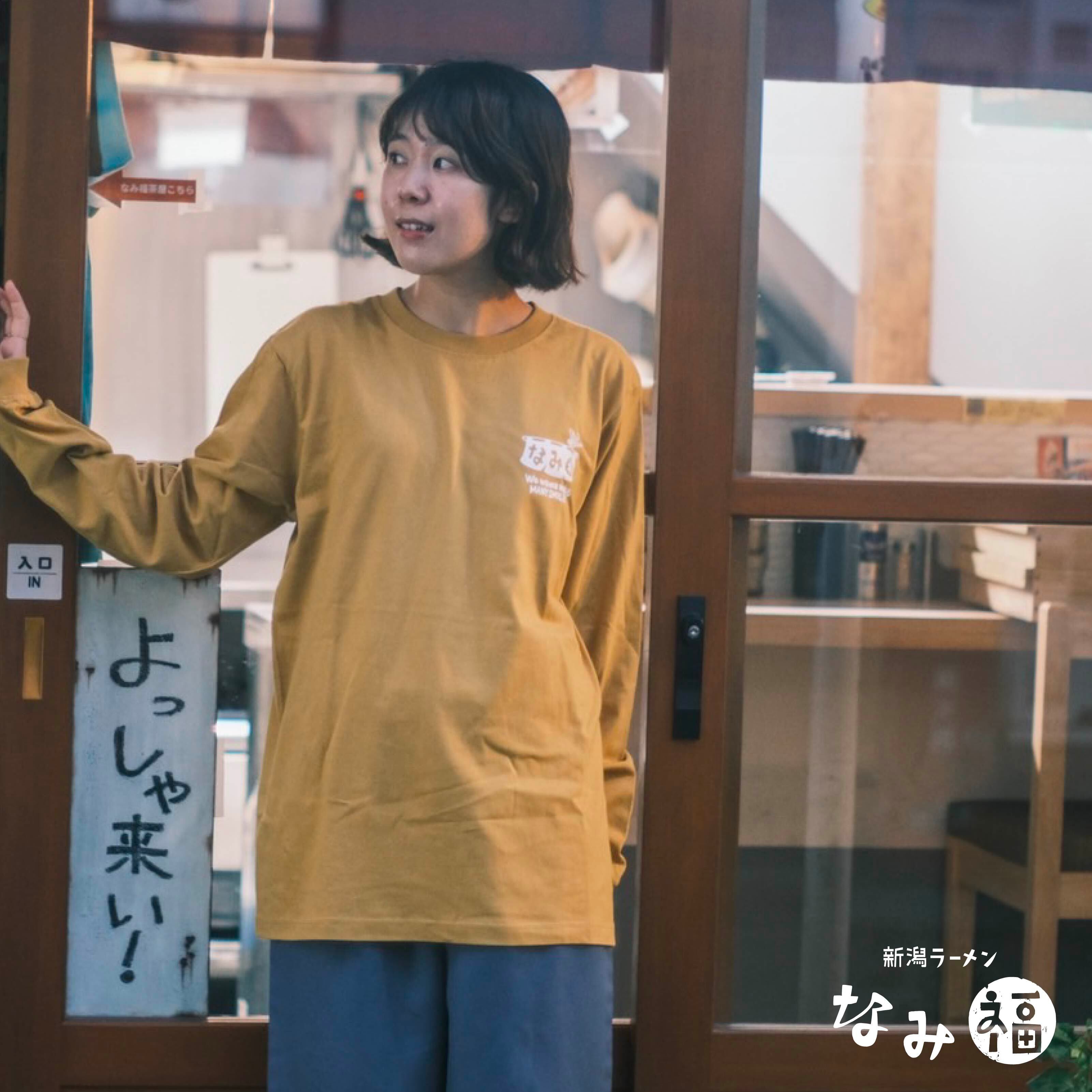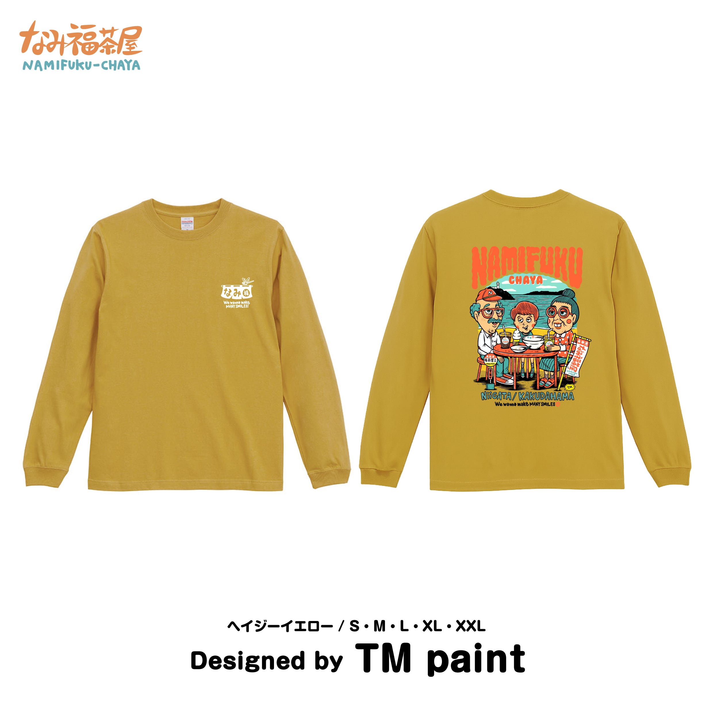 TM paintさんのNAMIFUKU CHAYAデザインが、ロングスリーブTシャツになって登場!こちらは秋冬ピッタリのこっくりイエローカラー。なじみやすい色味で、日常使いにもおすすめです。