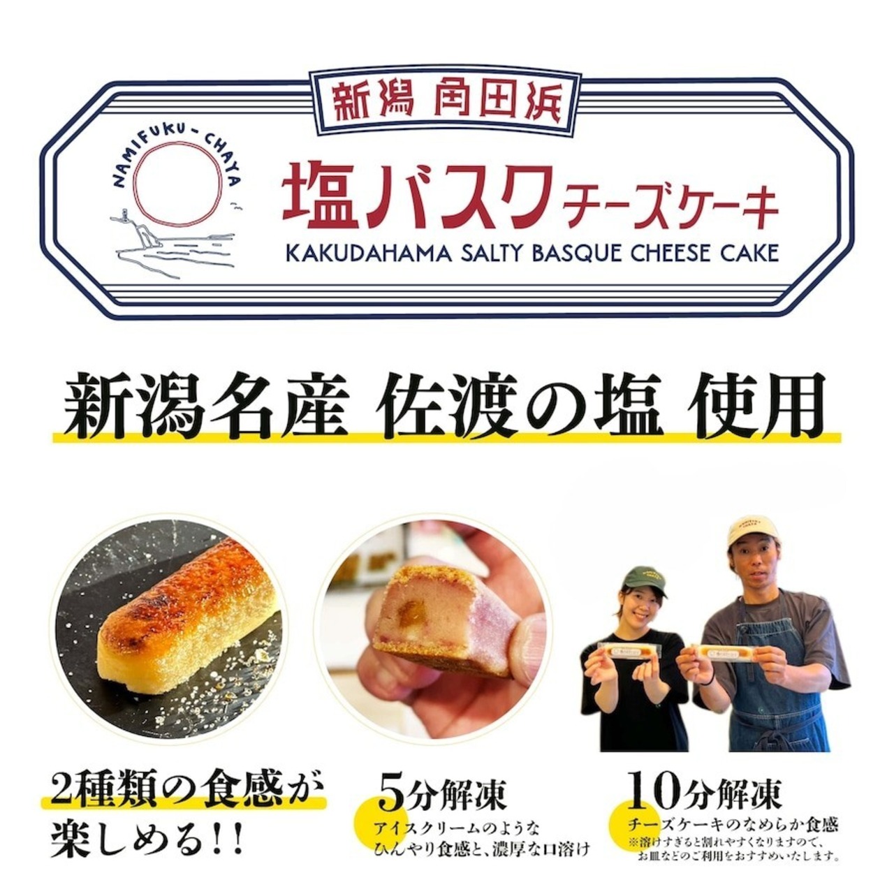 シンプルでありながら深い味わいの塩バスクチーズケーキ(プレーン)が6本。佐渡の塩が引き立てる、クリーミーで濃厚な味わいをお楽しみいただけます。